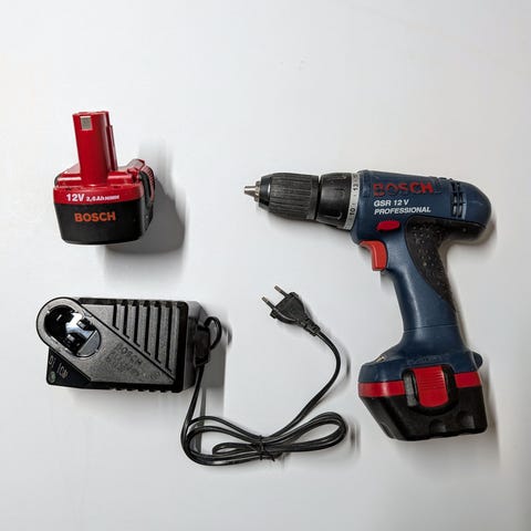 Bosch borrmaskin med 18V batteri. Med laddare batteri och låda