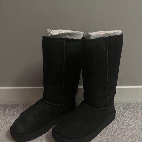 Varma, sköna och snygga Ugg i stl 37. Självklart äkta. I använt men bra skick med anmärkningar på. Litet skav/ hål på vänster skor som syns i den sista bilden. Men det påverkar inte funktionen. Mycket kvar att ge.