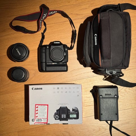 Komplett fotopaket: Canon EOS 400D + Speedlite-blixt & tillbehör