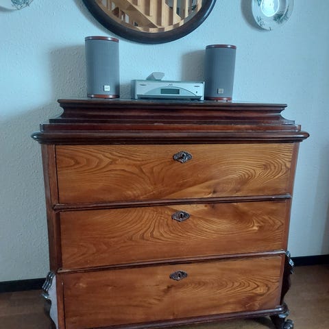 Gedigen byrå i massivt trä med 3 rymliga lådor. Klassisk och tidlös modell i varm träton. Stabil möbel i fint bruksskick med normal patina.