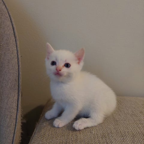 Nu söker våran kattunge ett föralltid hem, Han är otroligt gosig och älskar att klättra upp och mysa,samtidigt är han väldigt lekfull och nyfiken och älskar att leka och busa.