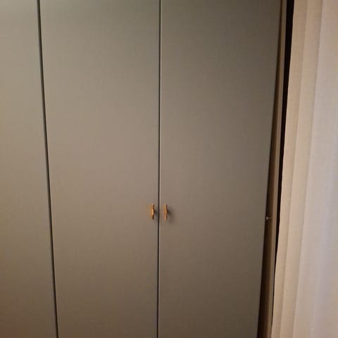 Dörrar (med gångjärn och skruvar) finns enligt foto.