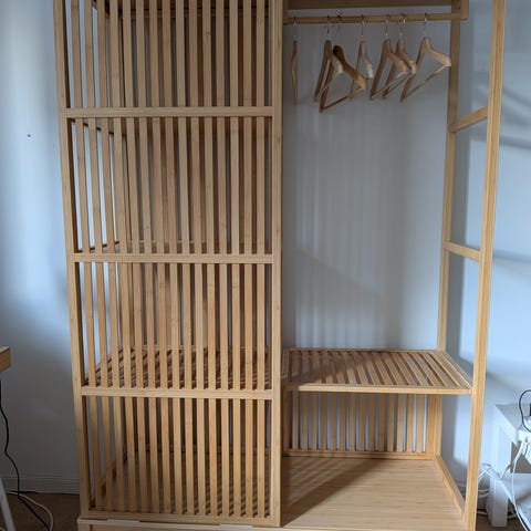 IKEA-hylla i serien Nordkisa. Öppen garderob med skjutdörr, gjord av bambu. Passar för förvaring och organisering av olika föremål i hemmet. Se min profil för liknande produkter.