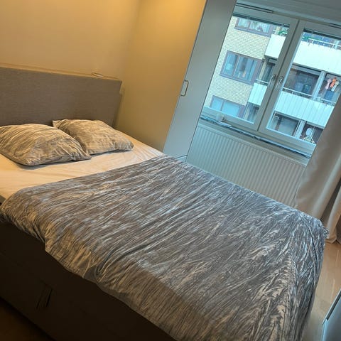 Dubbelsäng från MIO med komfort madrass från Emma (medelhård skummadrass), endast 2 år gammal. Väldigt bra skick, säljes pga flytt.