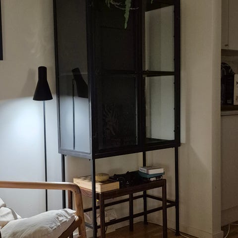 Säljer Vitrinskåp i massivt trä med glasdörrar och spröjs. Klassisk lantlig stil i varm träton. Nedre del med lådor och skåp för extra förvaring. Stabilt och välbevarat – perfekt för porslin, glas eller dekoration.