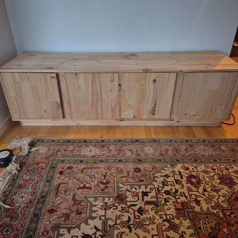 Praktisk TV-bänk med plats för spel, mm. TV-bänken är äldre och byggd i gediget trä.