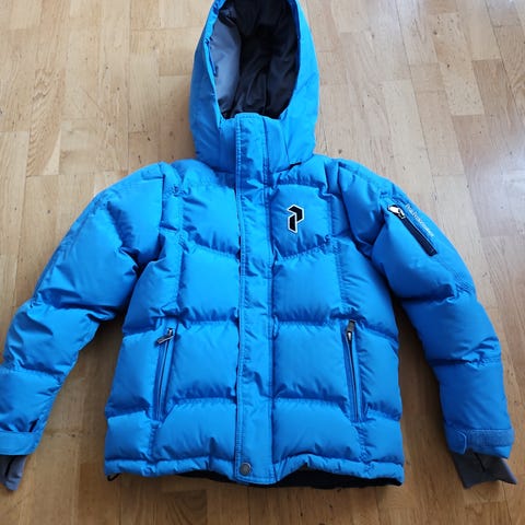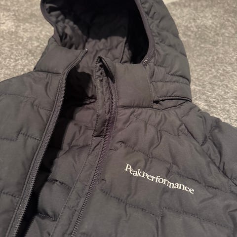 Peak Performance barnjacka i storlek 146, svart färg och tillverkad i polyester. Jackan är unisex och har en huva samt dragkedja framtill.