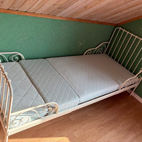 Vit VÄXA-SÄNG inkl 3 madrass-delar (madrass 80cm bred, från 1.4m lång)