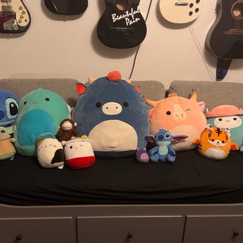 4 Squishmallows: morot, ramen, Aimee, guacamole