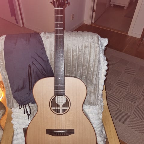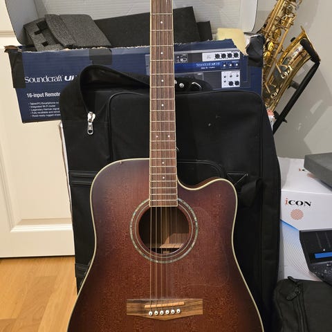 The guitar plays very well, with a nice low action. The only problem is that there is some earthing ‘hum’ when the guitar is plugged in. It’s probably an easy fix for someone who knows a little about electronics.