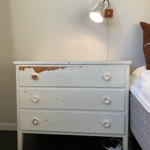 Byrån är fullt fungerande. Det förekommer ytliga repor på toppskivan (se närbild).