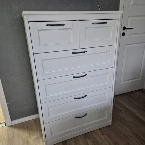 Säljer en byrå/kommode ur serien ASKVOLL från IKEA i svartbrun/vit finish.