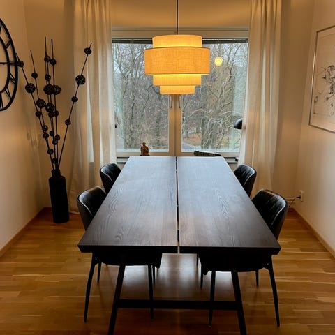 Finns 2 tillägsskivor så bordet kan bli 200/250/300 cm