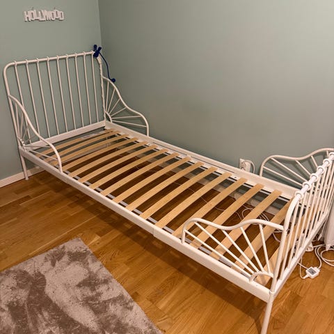 IKEA sängram i metall för dubbelsäng i svart färg. Enkel montering, bruksanvisning finns. (Madrasser ingår ej.)