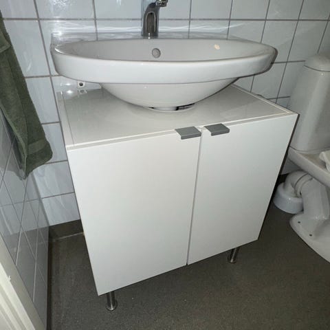 Skåpet är smalt och högt, vilket gör det perfekt för utrymmen med begränsad golvyta. Skåpet har två metallben.