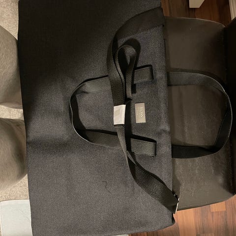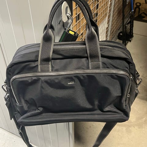 Väskans är lite sliten och dess innanmäte som ger rigiditet för toppen av västan är sprucket. (Man kan känna det genom tyget) väskan fungerar dock fint ändå