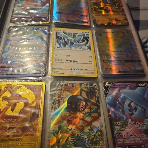 Samling av Pokémon kort inklusive olika karaktärer och energikort. Kortens skick är nya och de är avsedda för samlare eller spel. Kan skickas efter den 12/1 obs!