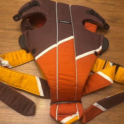 Baby Björn bärsele i retro design. Jeanstyg med prickig insida. Mycket lättanvänd, bekväm och enkel att hantera. Går att tvätta i tvättmaskin.