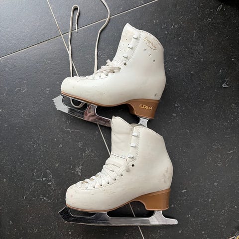 (Märke efter taggarna finns ) i storlek 34,5 med vita skenor och läderliknande material. Passar för konståkning