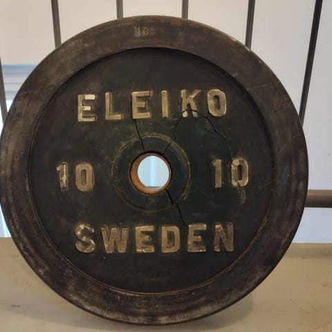 Leko viktset med skivstång och vikter i olika storlekar