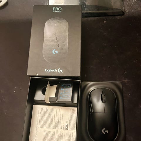 Logitech Pro X Superlight trådlös datormus i svart färg. Musen är designad för hög precision och låg vikt, lämpad för spel och professionell användning.