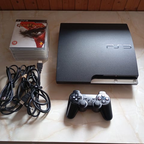 Sony PlayStation 3 Slim Spelkonsol med handkontroll och spel