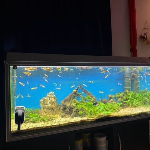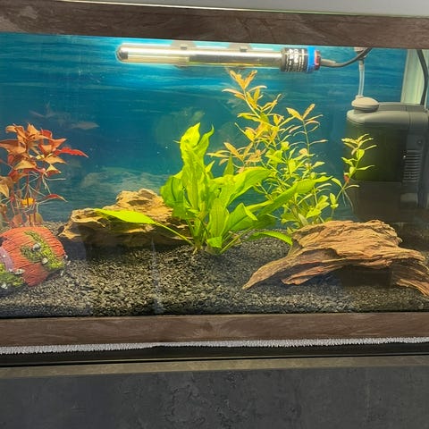 60L har pump/dopvärmare, grus, inredning, belysning, växter. Kommer rengöras innan de flyttar. 600:-