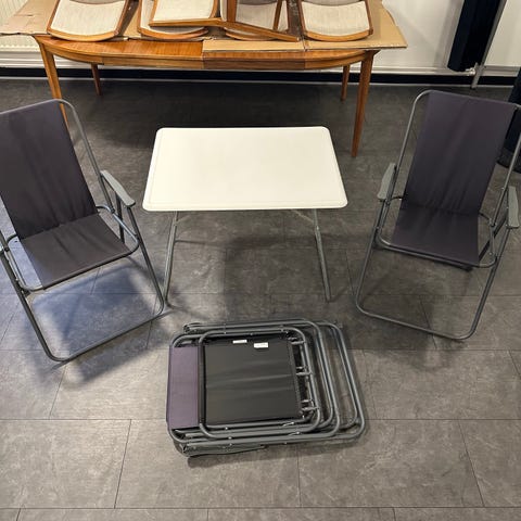 Satsbord Granboda från IKEA (utgått ur sortiment), inköpspris 599 kr. Har använts utomhus så har rostskador och slitage (se bilder) Främst övre bordet som är klädd med dekorplast.