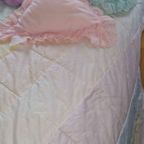 Vitt sängöverkast. 2,6 x 2,6 m.