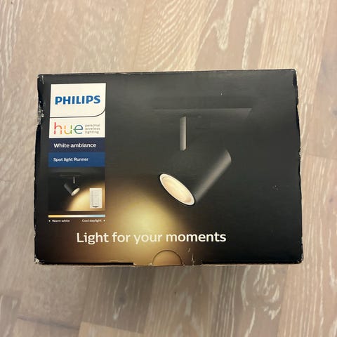 Spotlight från Philips hue med white ambiance och color. Medföljande fjärrkontroll och magnetiskt väggfäste.