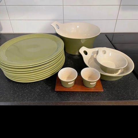 3 röda Taika tallrikar 27 cm+ 2 st 22 cm