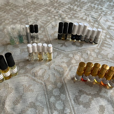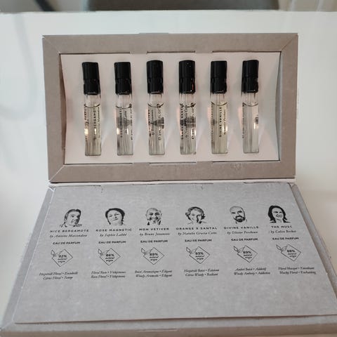 Paketet består av både officiella samples och beställda hanskapade prover på vissa nischparfymer som normalt inte har samples, ofta svårare att få tag på.