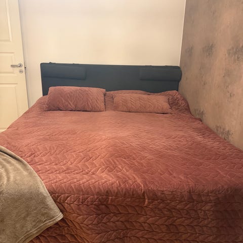 Säng 180cm x 200cm kontinental med sänggavel. Pris 1000kr
