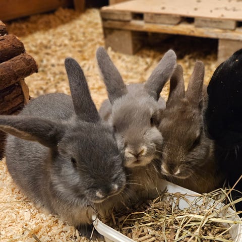 Vår fina lilla dvärgvädurfamilj på 3 kaniner bestående av kastrerade pappa Bamse 3 år i sommar (vit/grå), Mamma Gidget 3 år i sommar (den mest bruna på bilderna) och dottern Sötnos 2 år i sommar söker ny familj och trivs väldigt bra tillsammans så vi ser helst att de får fortsätta bo tillsammans.