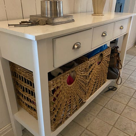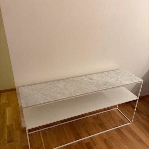 Ett konsolbord med en hylla och två lådor. Perfekt för hallen eller vardagsrummet.