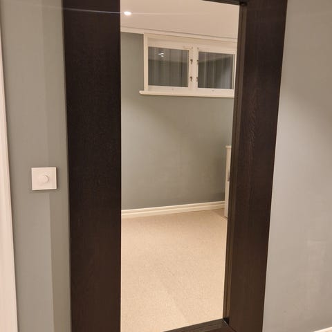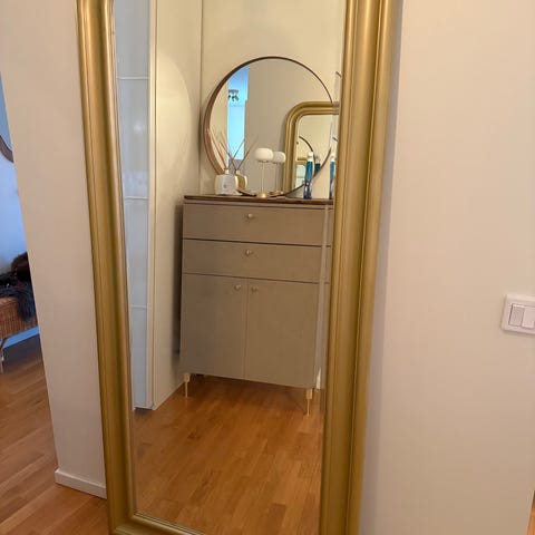 En stor spegel med träram. 76x226cm