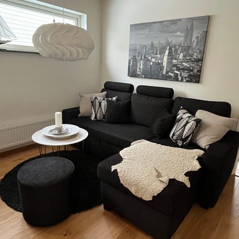 Nästintill ny bäddsoffa med vändbar divan säljes. Har haft den i två år men har knappt suttit i den. Den är därför helt fläckfri och har all fjädring kvar. Du kan ha armstöden på bara soffdelen eller divanen också. Men jag säljer den komplett. Sittdjup är ca 60cm på soffan och 110cm på divanen.