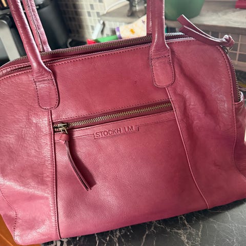 Jättefin väska I svart äkta läder med snygg t axelband. Sparsamt använd.