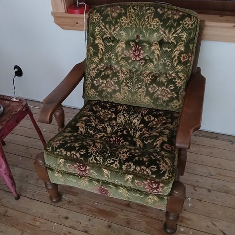 Pampig Vintage/antik fåtölj i sammetsgrön