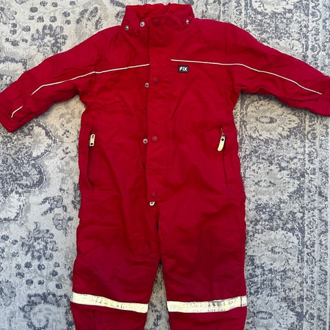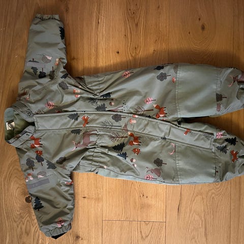 Lindex barnoverall i storlek 68. Overallens design inkluderar huva och är lämpad för kyligare väder.