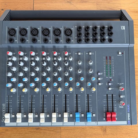 Säljer ett Soundcraft EFX8 mixerbord. Välanvänd men fullt fungerande. Har blivit moddad på undersidan för att kunna hänga på en vägg med två skruvar.