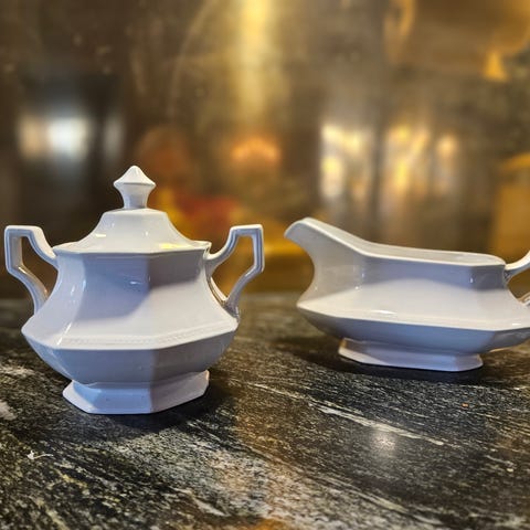 Sockerskål och mjölkkanna från Rice, höjd 9 cm.