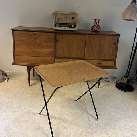 Ett Brickbord Serholt Sweden i mycket fint skick. Inga skador. Stativet i ek och brickorna vita med ekens ådring synliga.