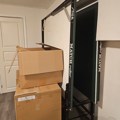 Välanvänt men fullt fungerande. Ena bordshalvan har använts som arbetsbord med en del fläckar o skav på men inget som påverkar funktionen.