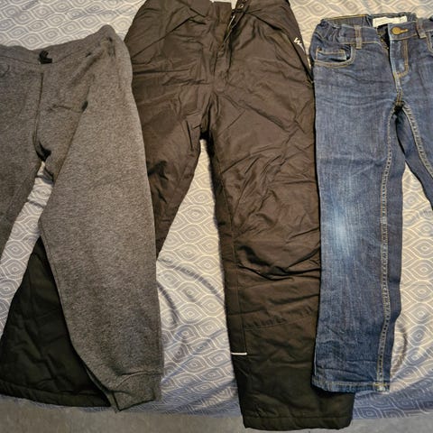 H&M barnkläder för pojke i storlek 104 med flerfärgat mönster. Innehåller flera plagg med olika motiv och färger, tillverkade i olika material. Passar för vardagligt bruk.