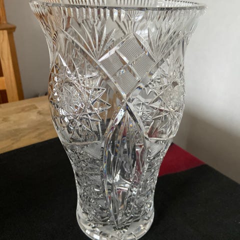 Fantastisk vackert kristall vas, 28 cm hög, från 1970 talet, som inte används, kanske du har plats för den , synd att den ska bara stå i skåpet.