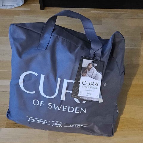 Kvalitetstäcke med tyngden 5kg från Cura. Knappt använt så i mycket fint skick.