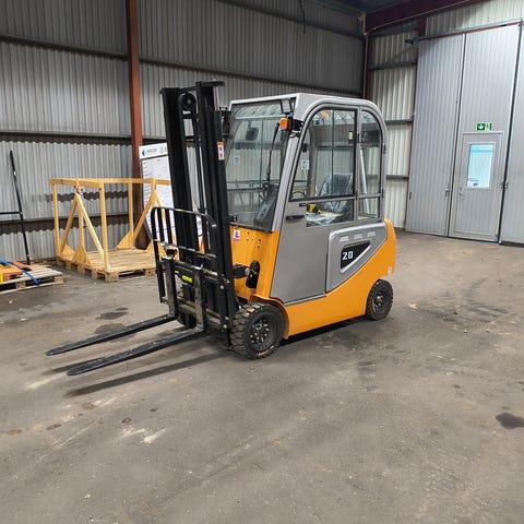 Eltruck. Fungerar utmärkt. Hydraulisk sidoförflyttning och manuell spridning. 230V laddare och underhållsfria batterier.