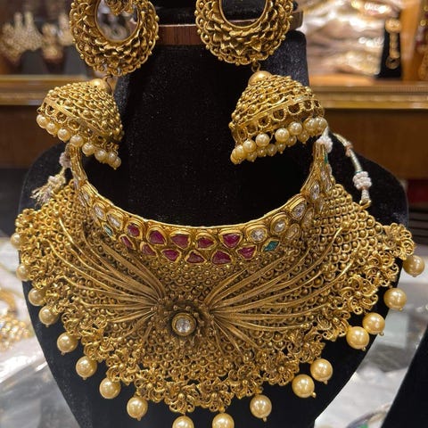 Unikt collier av återbrukade vintagepärlor.