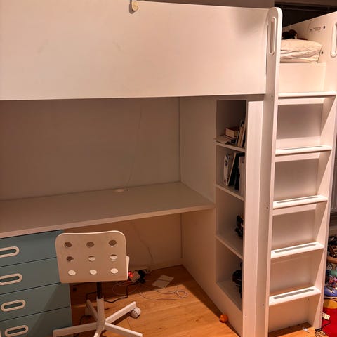 Säljer en använd Ikea Småstad (loftsäng) i bra skick men med vissa märken av tuschpennor som syns på bilderna.